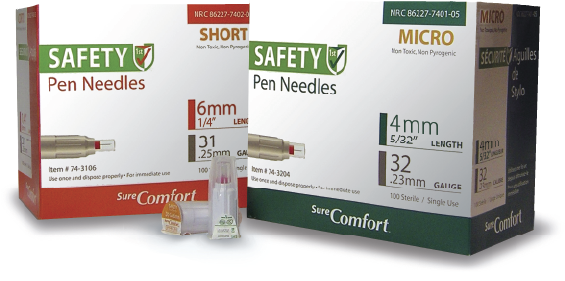 SureComfort’s “PASSIVE/AUTOMATIC” Safety Pen Needle is a single use system that does not require additional active motion or changing of the hand position for the safety shield to engage after a health-care provider administers the insulin injection. This exclusive feature is designed to minimize accidental needle stick injuries.