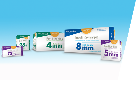 SureComfort diabetic products offer the largest variety of needle lengths and gauges available on the market. Striving to ensure we provide the products that fit your personal needs and life style with convenience, value and comfort.